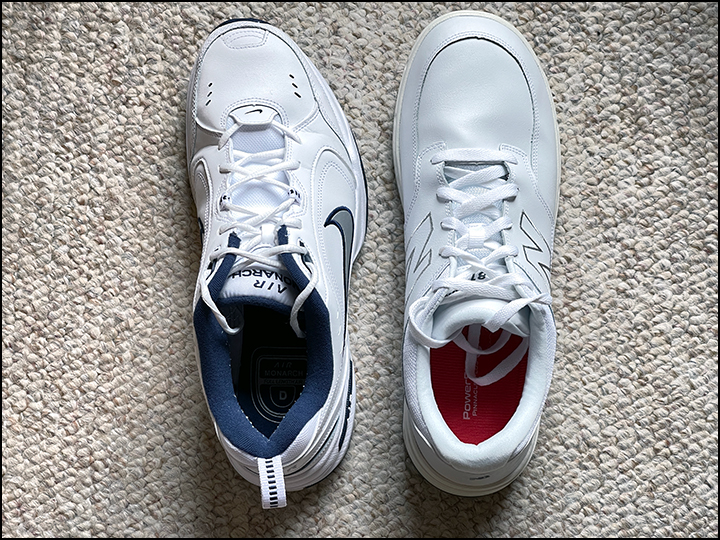 Using the philosophy mentioned above about being my own advocate, I’ve learned more about feet and shoes in the past three weeks than I ever thought I needed to know. In fact, everyone should know these things. I used a Brannock device to measure my feet properly, was surprised to find that I had both my size and width wrong, and I’ve since purchased the right size shoes. My wife needs to do the same. Interestingly, I’ve also learned that many common athletic sneakers are shaped incorrectly and contribute to the problems many people have, so I’ve switched to what’s called a natural shape shoe (I have some photos below to demonstrate how absurd that situation is).