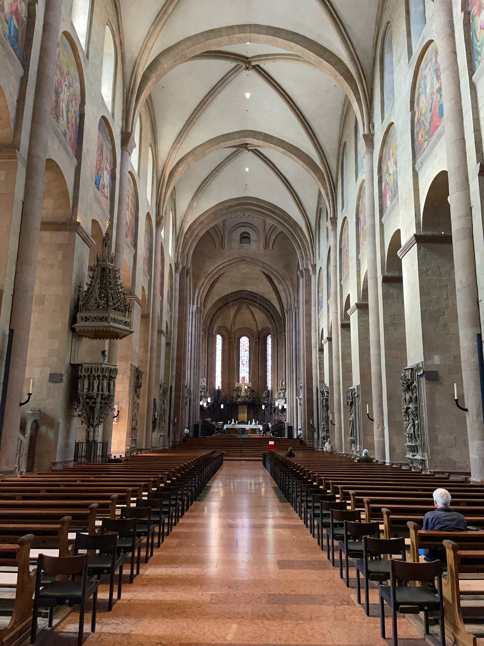 In Mainz, one of the places I always visited was Mainz Cathedral. The walk from the Hyatt over to the Marktplatz where it’s located is short and quiet. The cathedral, built over 1,000 years ago, is stunning and massive. It has an intricate sandstone exterior and impressive soaring interiors.